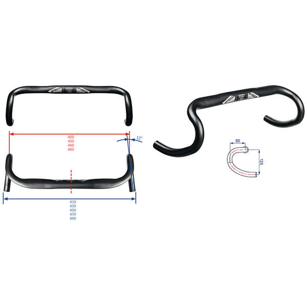 Ghidon de tip road fabricat din aluminiu 6061, cu o lungime de 440mm, prindere de ghidon de 31.8mm si o greutate de 325 grame. Ghidonul are drop de 125mm, reach de 80mm si manerele amplaste la un unghi de 12 grade.