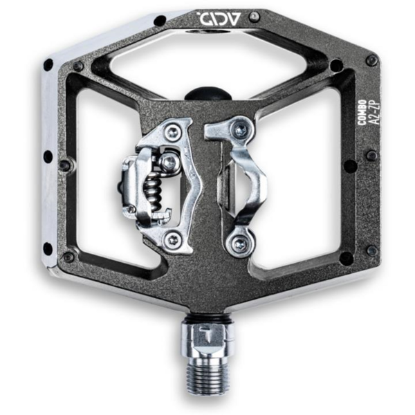 I know every berm, jump, rock and tree root of this bike park. It's one massive adrenaline rush! And I can count on my ACID COMBO A2-ZP pedals 100%. The adjustable anti-slip pins on one side and clip system on the other keep me glued to the bike even on the gnarliest of root sections – yet I can still dab in a flash if things start to get a bit too loose.light combo pedal with single-sided clip mechanism;SPD compatible;CNC finished aluminium body and CrMo axle;chamfered edges for improved cornering clearance;large contact surface; ultra low-profile design;16 replaceable and adjustable anti-slip pins;sealed cartridge bearingssize (LxWxH) 100 x 115 x 25 mmmaterial aluminiumweight 560 g